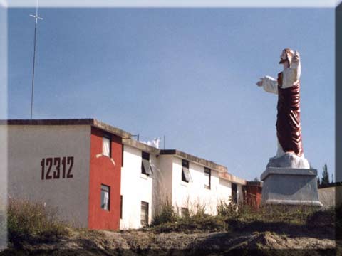 Many areas in the city have their own altars or statues. This one is near an area named "Fuentes de San Bartolo"