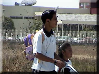 Brother and sister walking back to their house after school. Schools in Puebla are from 8:00 am to 1:00 pm