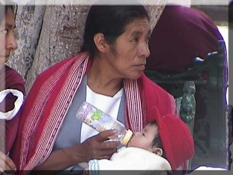 Feeding her baby in downtown Puebla
