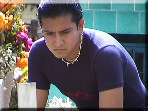 At the tomb of someone he loved at the French Cemetery in Puebla - "Cementerio Frances de Puebla" - During the celebration of the Day of the Dead.